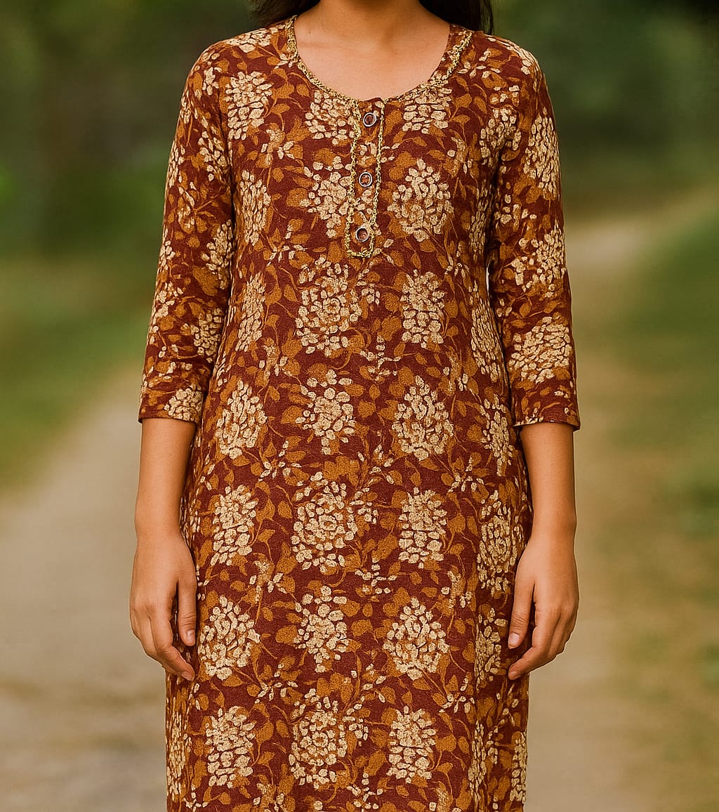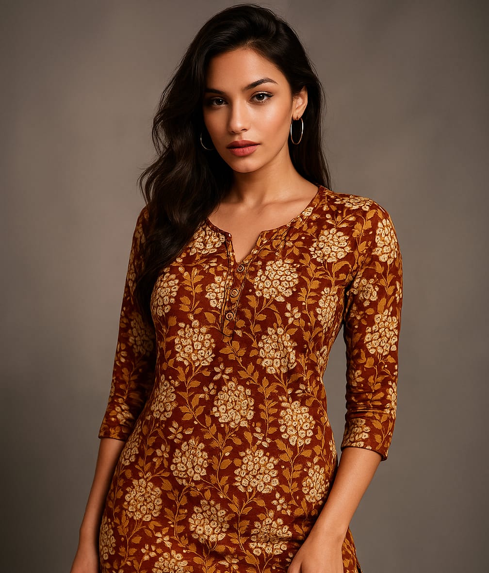 This kurti isn’t here to whisper elegance—it’s here to flirt with it and wink at tradition while strutting down the lane like it owns the spotlight.