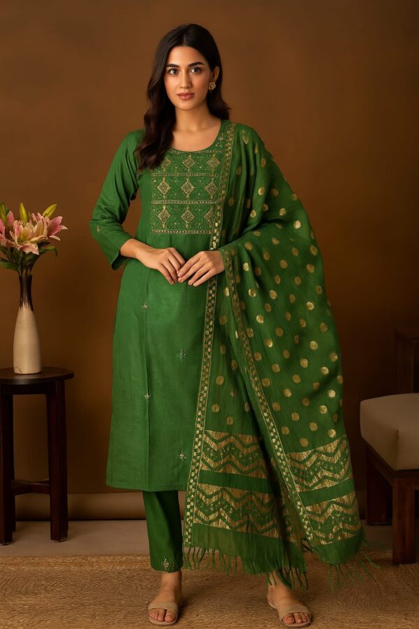 Royal Green Gold Embroidered Kurta Set