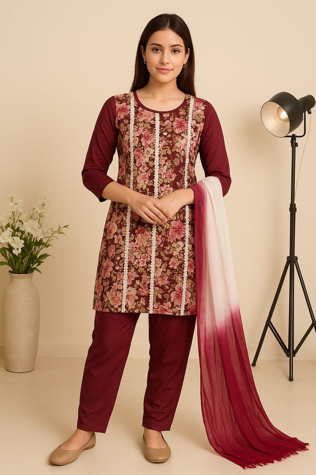 Maroon floral print is classy but thoda heavy lagta hai for daily wear. Great for festive evenings tho 🌸.