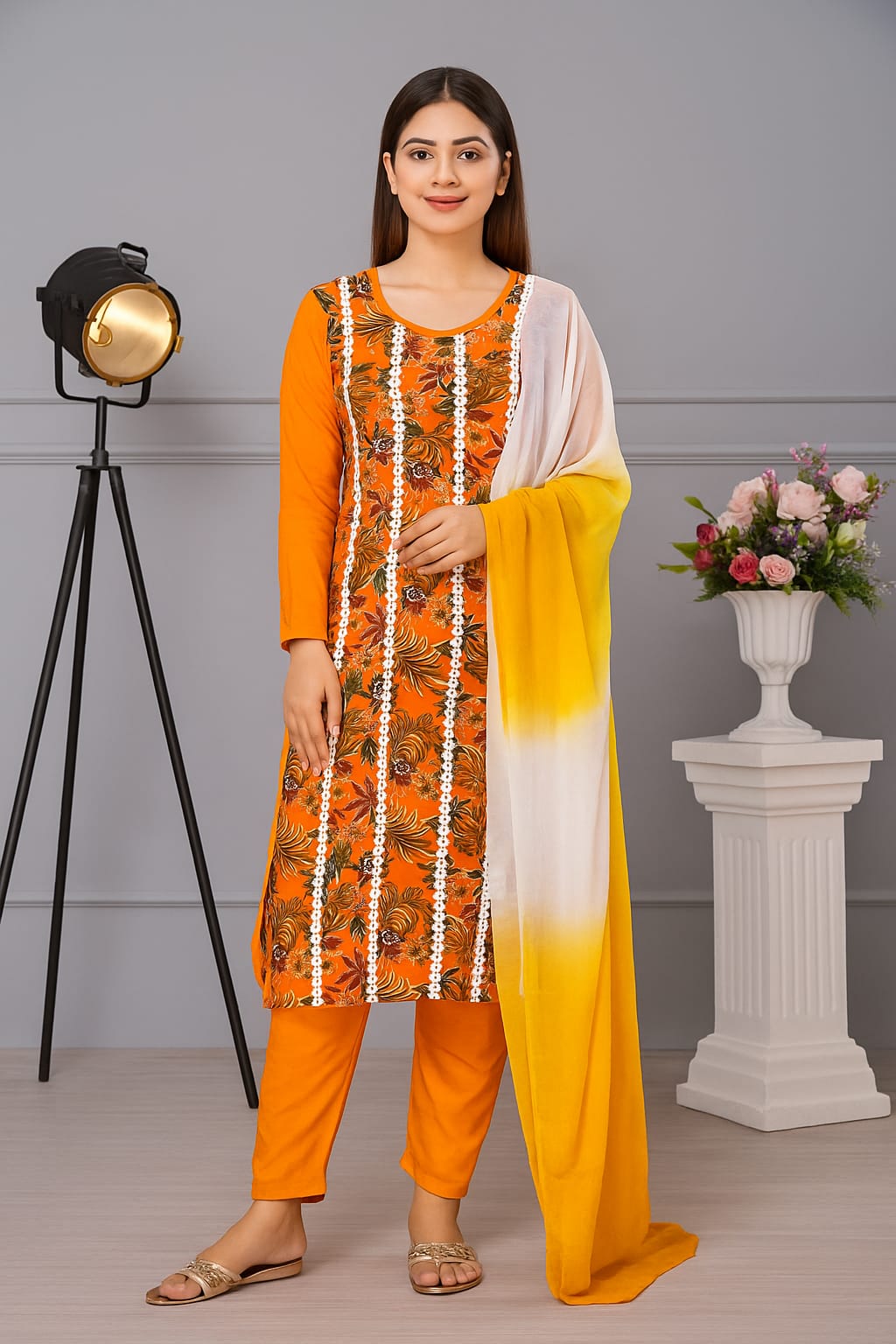 The orange with yellow dupatta is just sunshine vibes ☀️. Bright, bold, and comfy. Got compliments from random aunties in the market 😂.