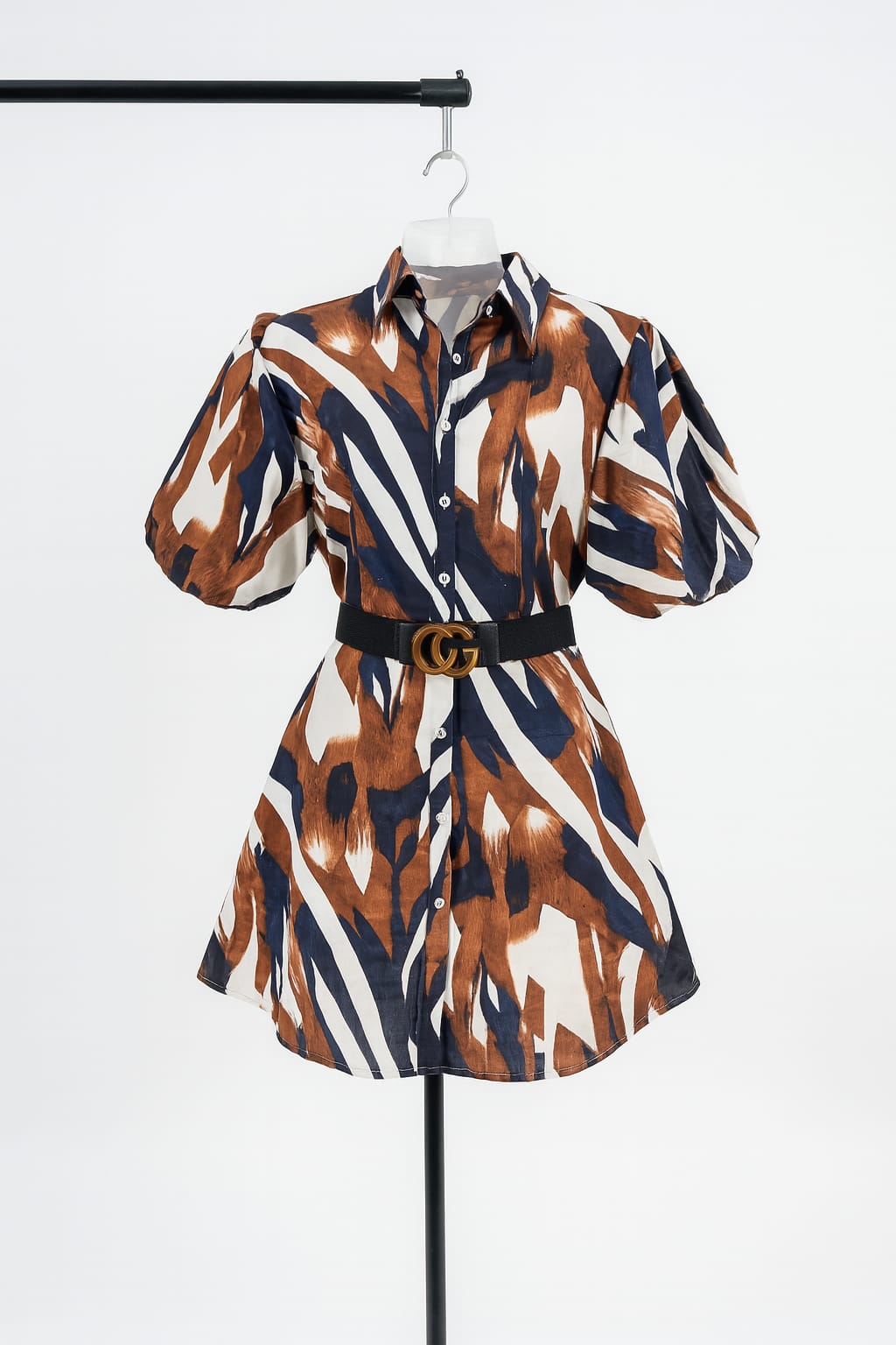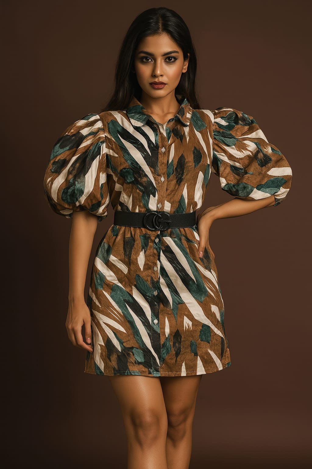 With sleeves puffed like your ego post-selfie session and a belt that cinches just right (yes, waist snatch alert 🔥), this is not your average shirt dress. It’s that girl energy.