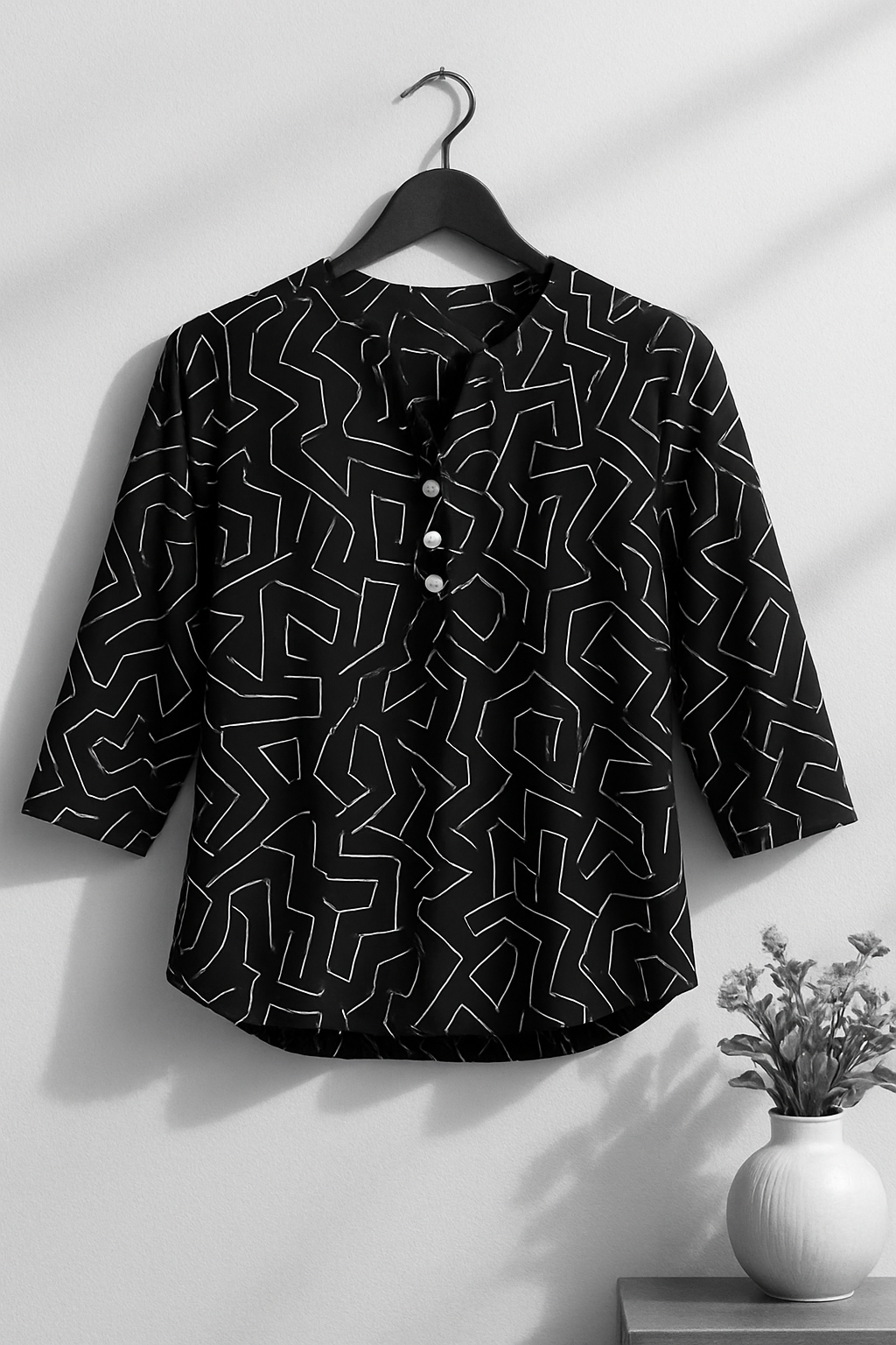 Made for the girls who love a little mystery with symmetry, these geo-printed beauties are structured, sassy, and seriously versatile. Whether you’re dressing up for a quick “just chai” date or slaying 9-to-5 meetings with no mercy, this top’s got your back… and your neckline.