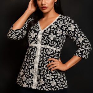 This isn’t just a top—it’s your new style hack. Crafted with luxe cotton blend fabric, detailed ivory floral embroidery, and chic lace trims, it comes with an adjustable lace tie-up that makes it fit beautifully from S to L size. One top, endless ways to slay ✨